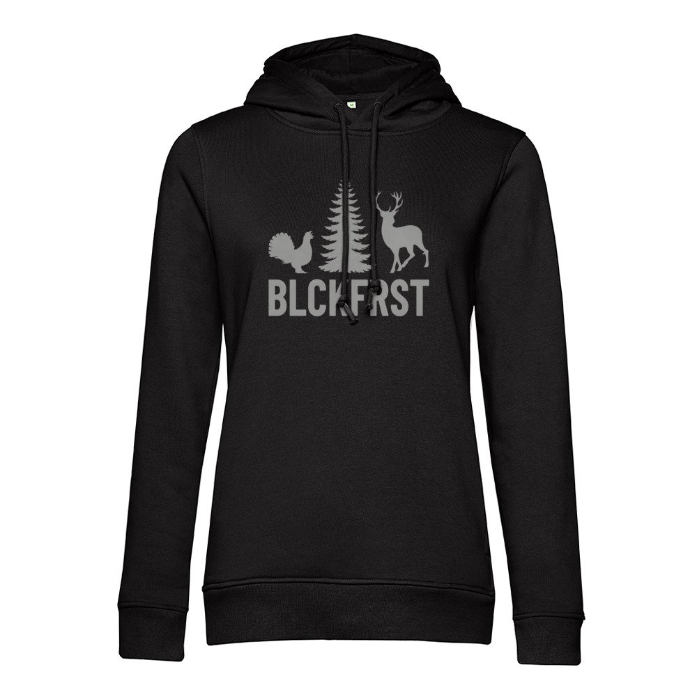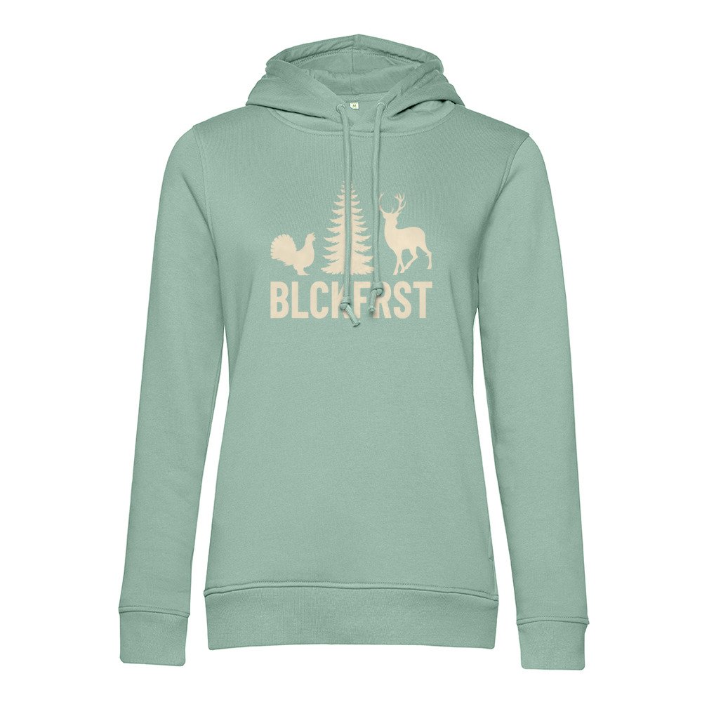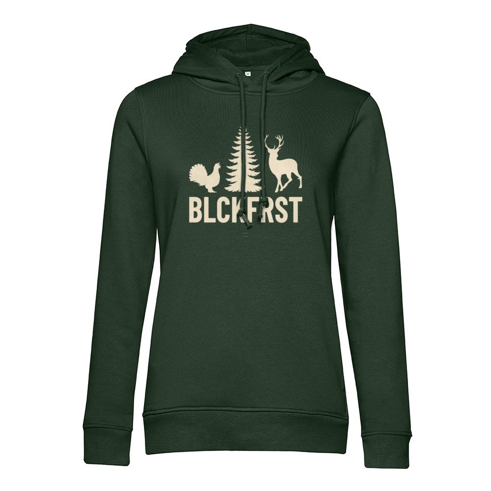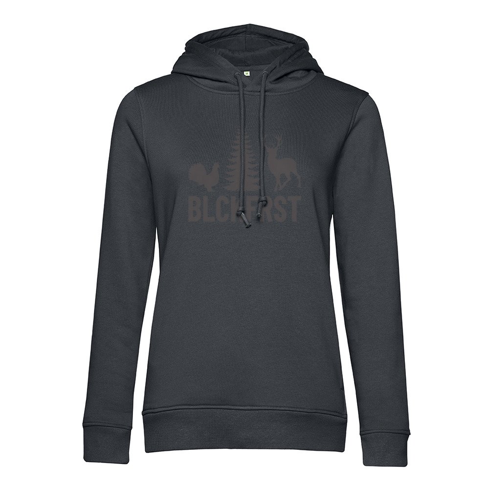 Die hochwertige Materialmischung fühlt sich weich auf der Haut an und sorgt mit der angerauten Innenseite für angenehme Wärme. Die feminine Passform ist leicht tailliert und unterstreicht deine Silhouette, ohne einzuengen. So sitzt der Hoodie bequem und bleibt modern in seiner Linie. Kapuze mit stabilem Sitz, praktische Kängurutasche und saubere Bündchen runden das Gesamtbild ab. Die Schwarzwald-DNA schwingt subtil mit und gibt dem Design emotionale Tiefe, ohne folkloristisch zu wirken.
